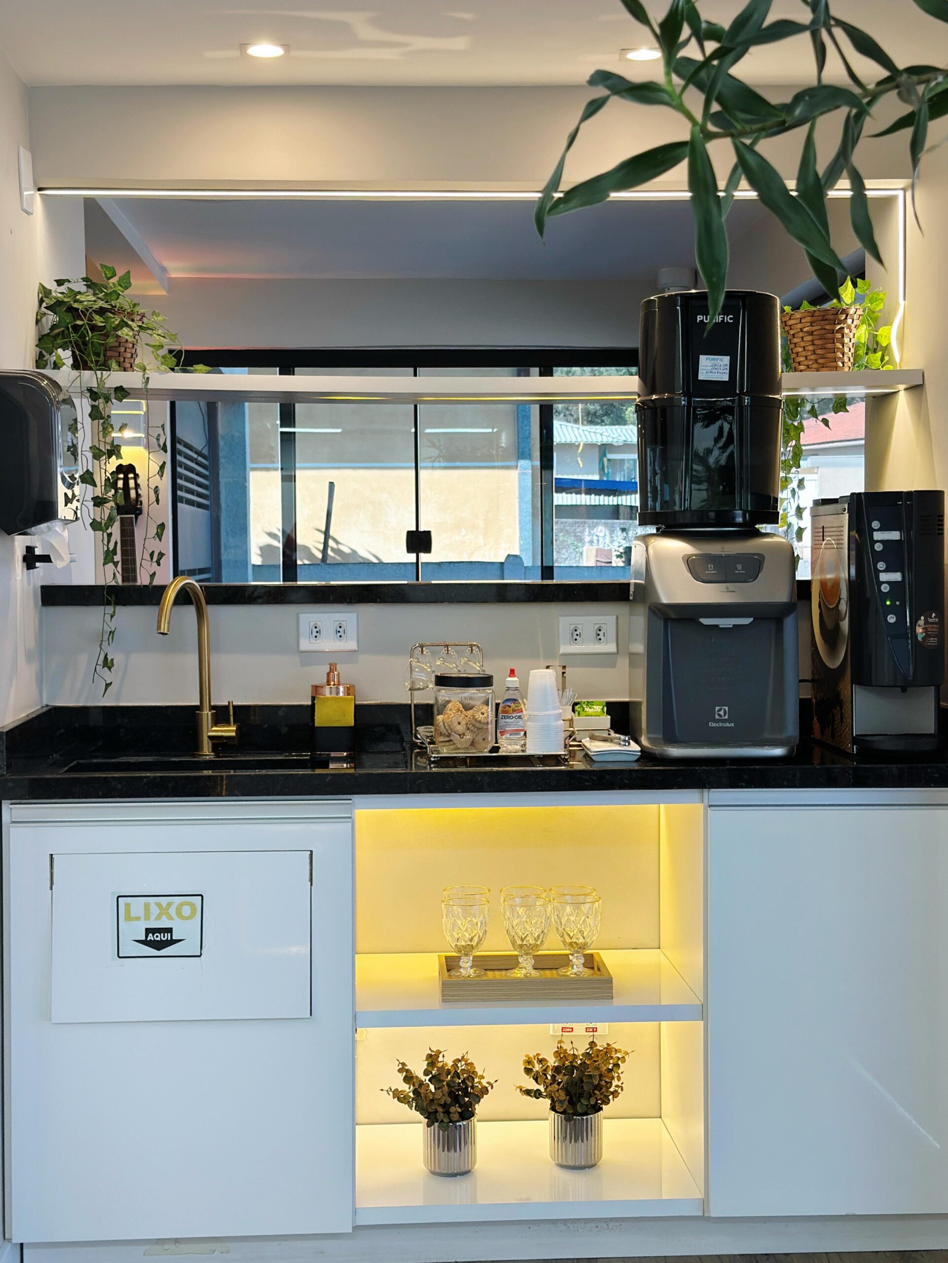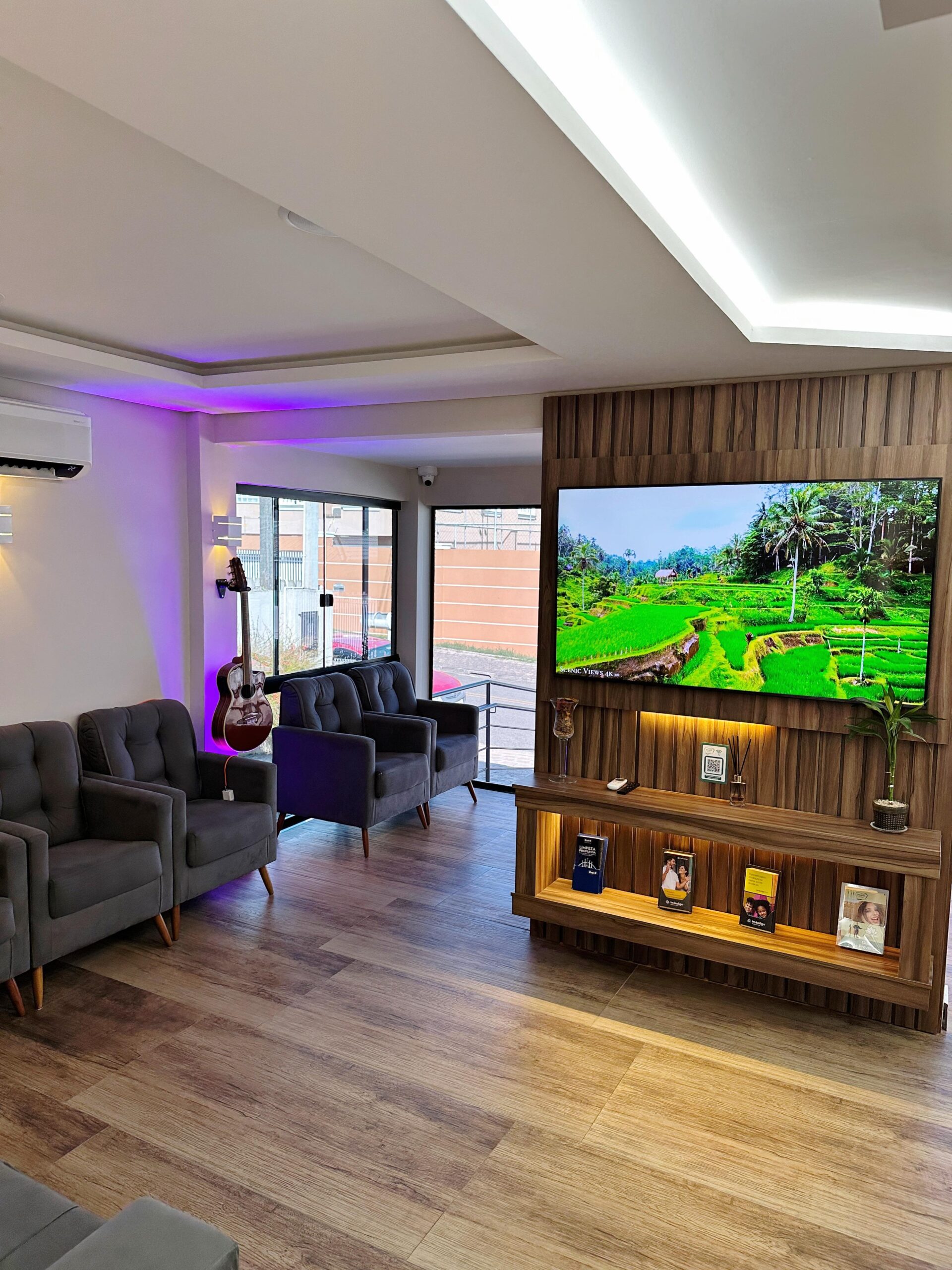 Desfrute de uma sala de espera climatizada e relaxante, com opções de água, chás e cafés para sua comodidade.